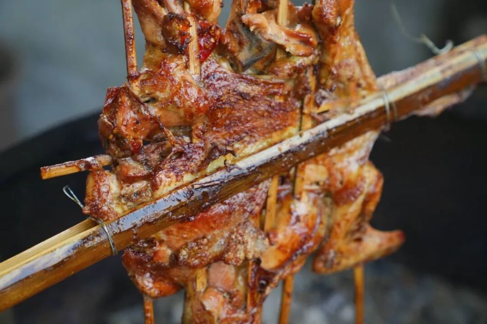英国首相菜单中的同款景颇烤鸡。陇川县融媒体中心 供图 李平 李爱莲 杨富婷 吴思耿 摄