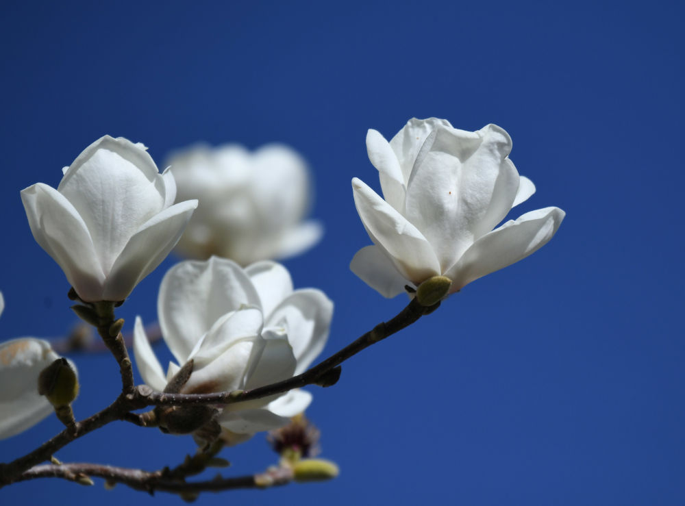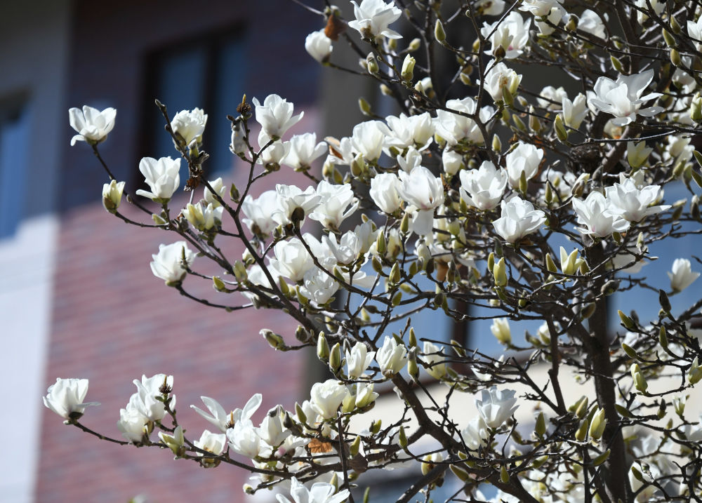 据悉,玉兰花又称白玉兰、望春花,其特点是先开花后长叶,花瓣多为白色或紫色,盛开时散发着淡淡的清香,花期一般有20天左右。