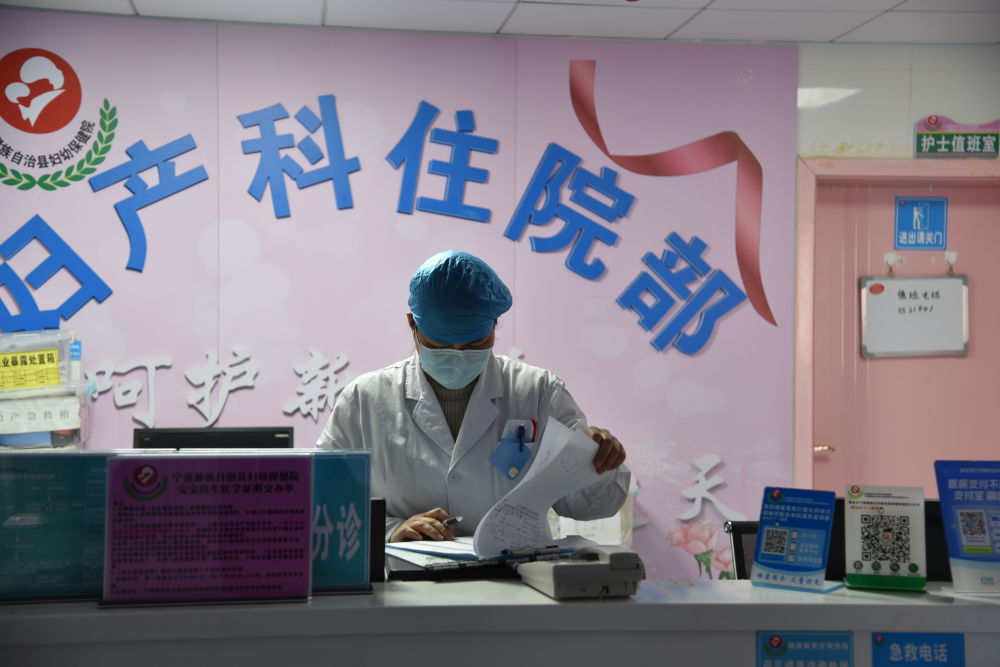 宁蒗县妇幼保健院妇产科医生做查房前的准备工作。(见习记者 和丽菊 摄)