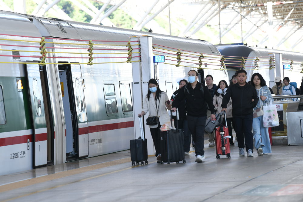 旅客在丽江火车站乘车出行。(丽江融媒记者 赵庆祖 摄)