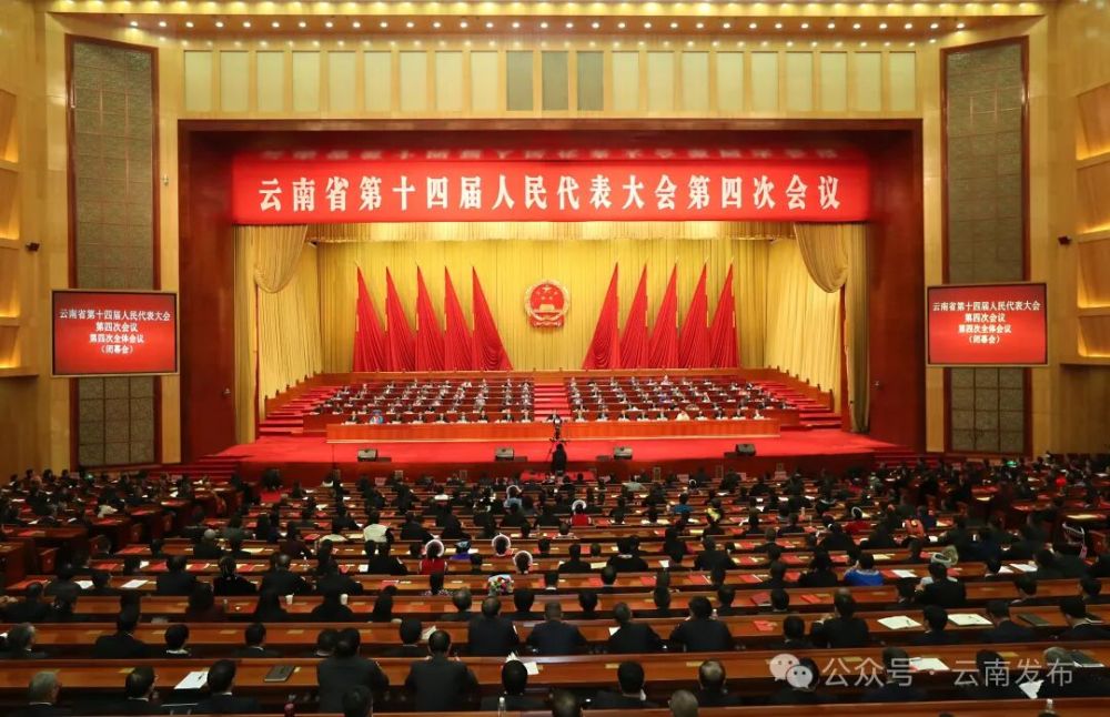 2月1日上午,云南省第十四届人民代表大会第四次会议圆满完成各项议程,在昆明胜利闭幕。大会号召,全省各族人民要更加紧密地团结在以习近平同志为核心的党中央周围,凝心聚力抓落实,只争朝夕加油干,马不停蹄、阔步前进,奋力实现“十五五”开好局起好步,为开创云南发展新局面而团结奋斗。