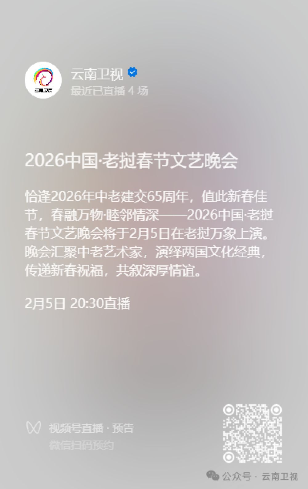 (△云南卫视视频号扫码观看直播)