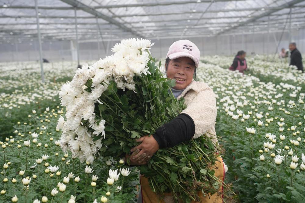 冬日的双河乡,寒风凛冽,但在偏岩村杉木坪片区的菊花基地大棚内,却是一派生机勃勃的景象。走进棚内,各色菊花竞相绽放,空气中弥漫着淡淡清香。村民们正穿梭在花丛间熟练地采摘、打包,欢声笑语与花香交织,勾勒出一幅乡村振兴的生动图景。