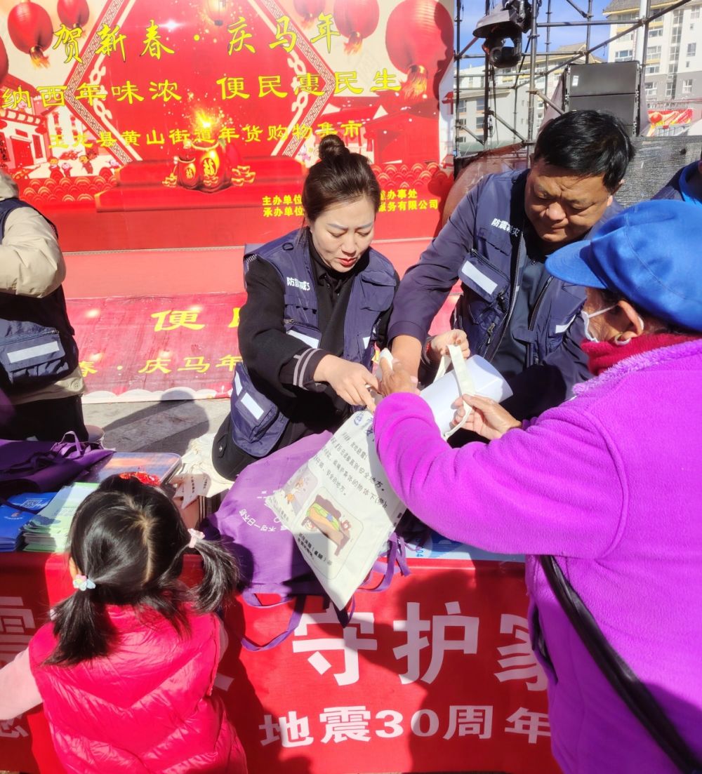 2月3日是丽江“2·3”地震30周年纪念日,玉龙县地震局在黄山街道年货购物集市举办“以史为鉴 警钟长鸣 防震减灾 守护家园”主题纪念活动,吸引了众多市民和游客驻足参与,在铭记历史中强化防灾意识。