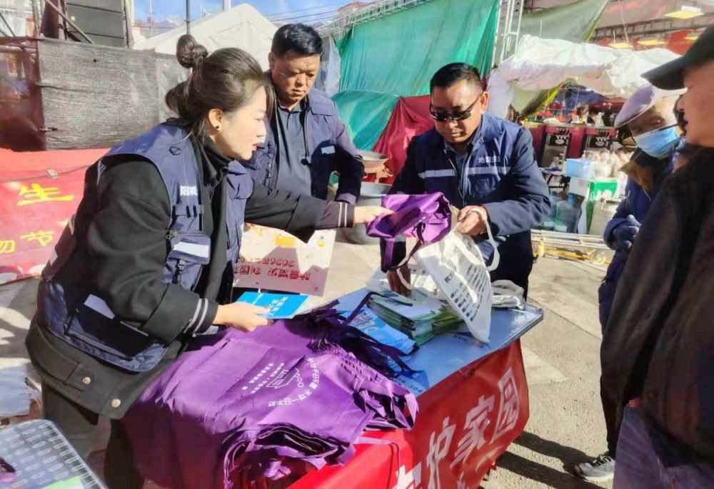 玉龙县地震局工作人员向群众发放防震减灾宣传手册。(丽江融媒记者 李映芳 摄)
