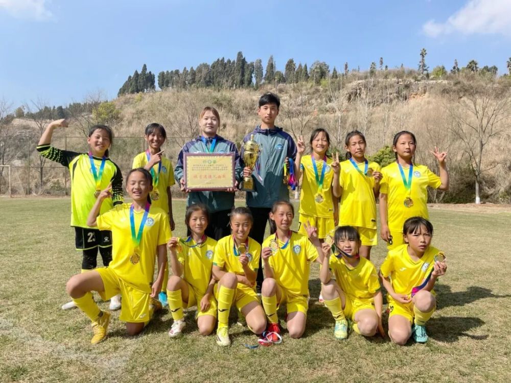 丽江女足小将在昆明夺冠。(市教体局 供图)