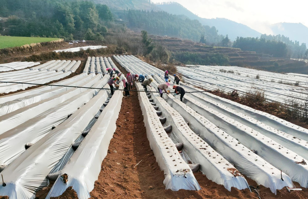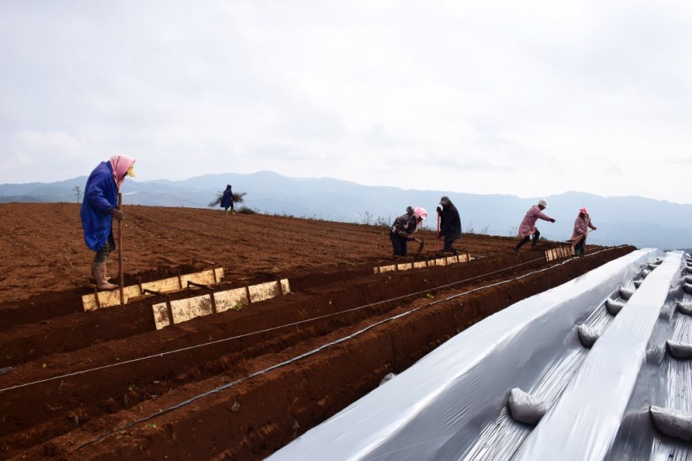 日前,在巧家县炉房乡的田间地头,草莓种植户和务工群众正在抢抓晴好天气开展生产,忙着翻耕平整土地、开沟、起垄、安装滴管、覆盖薄膜等作业,为后期草莓苗移栽做准备。在平坦的地块,工人还操作起垄机进行作畦,田间不时传来机器“轰隆隆”的作业声。大家干得热火朝天,一道道工序有条不紊,田间地头一派人勤地不闲的忙碌景象。