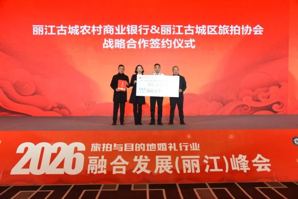 1月28日,在2026旅拍与目的地婚礼行业融合发展(丽江)峰会上,丽江古城农村商业银行与丽江市古城区旅拍行业协会签署战略合作协议,标志着双方在推动文旅融合、助力旅拍行业高质量发展方面迈出了坚实的一步。