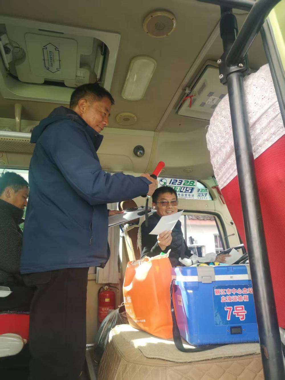 对出站车辆进行安全检查,对驾驶员进行洒精检测和旅客系安全带检查。(丽江汽车客运站 供图)