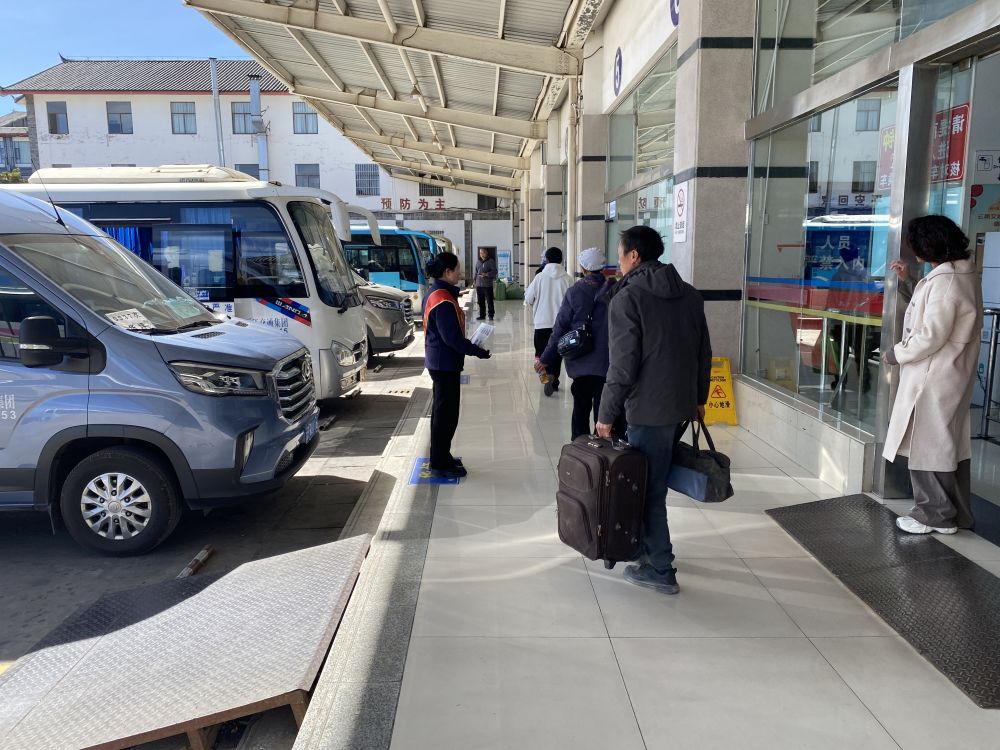 客运站除了保障“走得了”,更要让旅客“走得好”。针对来丽游客,景区直通车服务持续优化,特别是“丽江—虎跳峡—香格里拉”线路保持经停游览。为服务好老人、儿童及携带大件行李的旅客,客运站强化了“暖心服务”,增设的“绿色通道”提供优先通行,志愿者团队活跃在站内各个角落,提供从引导咨询到行李提携的全方位帮扶,让归家路和出游路更加顺畅安心。
