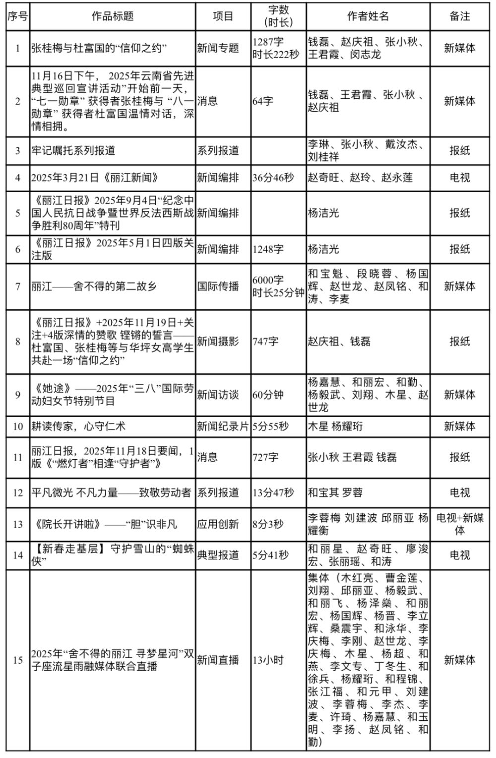 丽江市融媒体中心关于2025年度云南好新闻征集展示暨中国新闻奖初评工作拟推荐作品公示