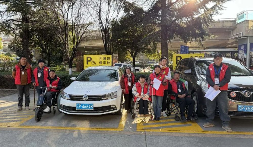市、区两级残疾人代表体验丽江机场无障碍停车位配套设施。(供图)