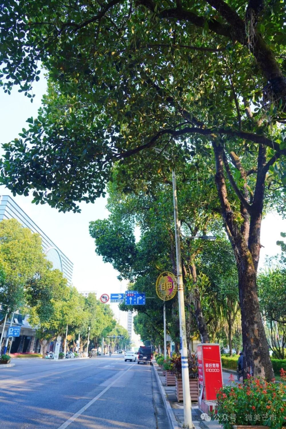 在芒市勐焕路两旁,棕榈树是这条主干道的标志性绿植,植株长势繁茂,树干粗壮整齐,叶片翠绿舒展。