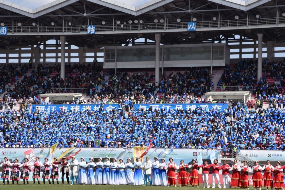500余名曲靖球迷与丽江本地球迷相伴而坐。(丽江融媒记者 段玉菊 摄)