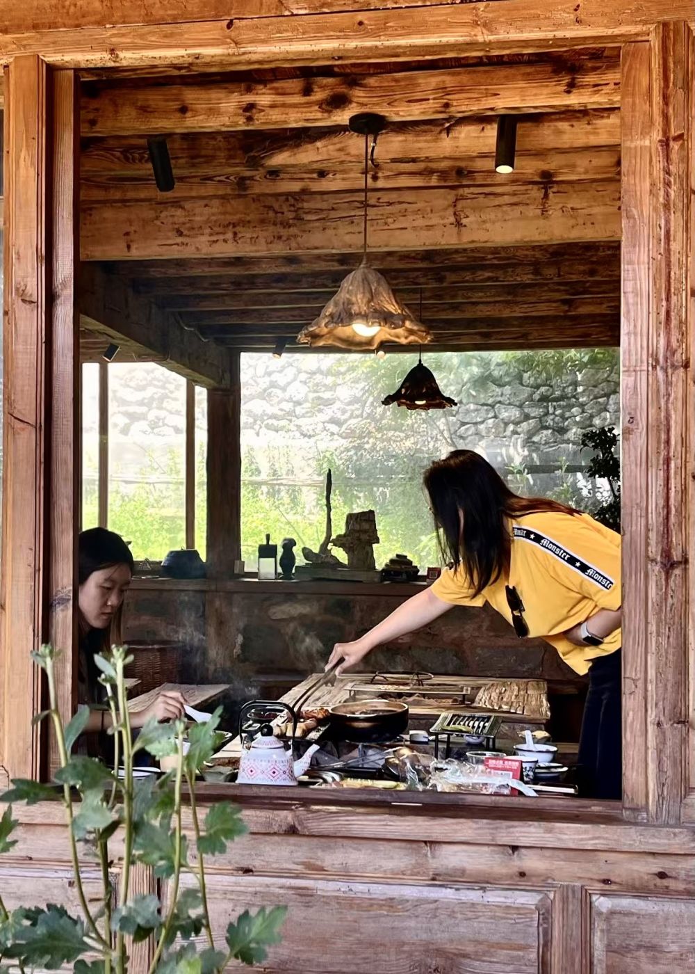 游客品尝特色土灶上烹煮的美食。(丽江融媒记者 和慧芳 摄)