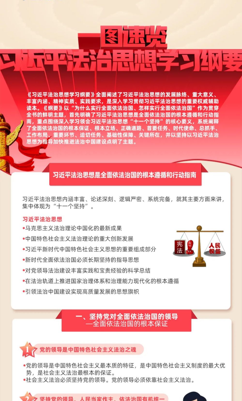 《纲要》系统反映了习近平法治思想对我们党领导法治建设理论成果、制度成果、实践成果的科学总结,突出反映了习近平法治思想原创性、独创性、集成性重大贡献,全面展现了这一思想强大的真理穿透力、思想感召力和实践引领力,具有很强的政治性和理论性。