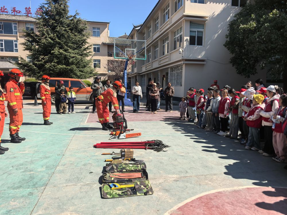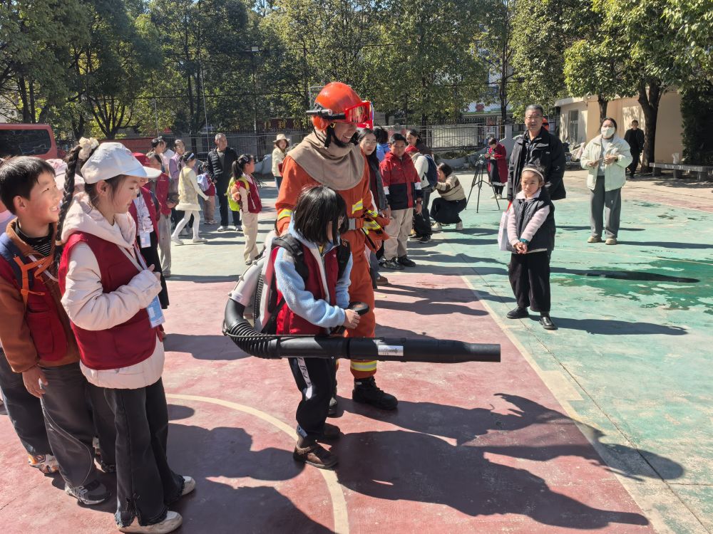 工作人员向孩子们展示各类灭火工具的用法。(丽江融媒记者 秦文静 摄)