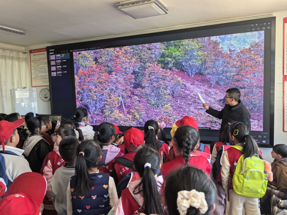市林草局工作人员通过监控画面,让孩子们了解到优渥的森林资源。(丽江融媒记者 秦文静 摄)