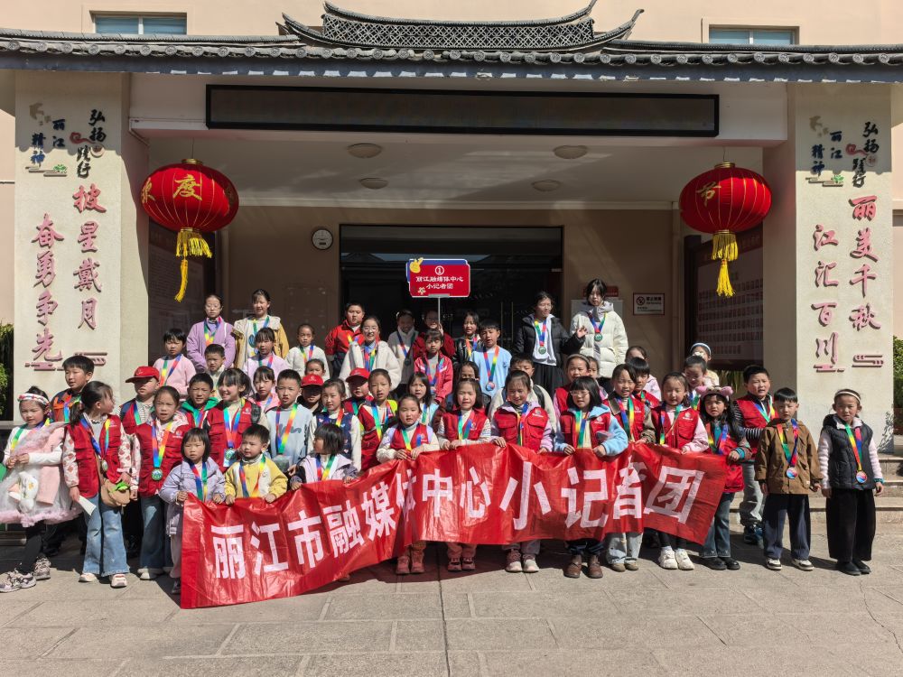 小记者团和市林草局职工子女合影留念。(丽江融媒记者 秦文静 摄)