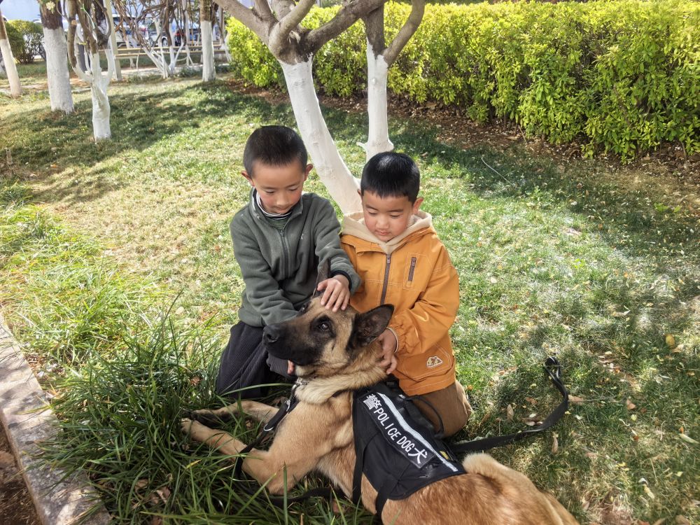 小朋友正在和警犬互动。(丽江融媒记者 侯玮 摄)