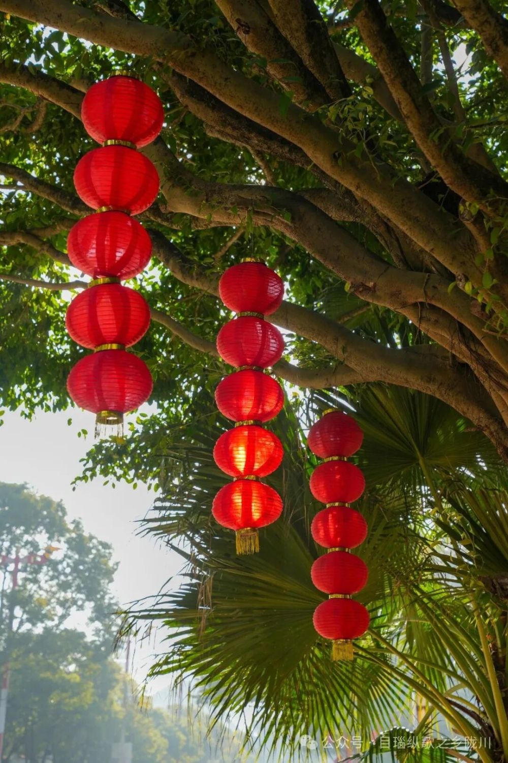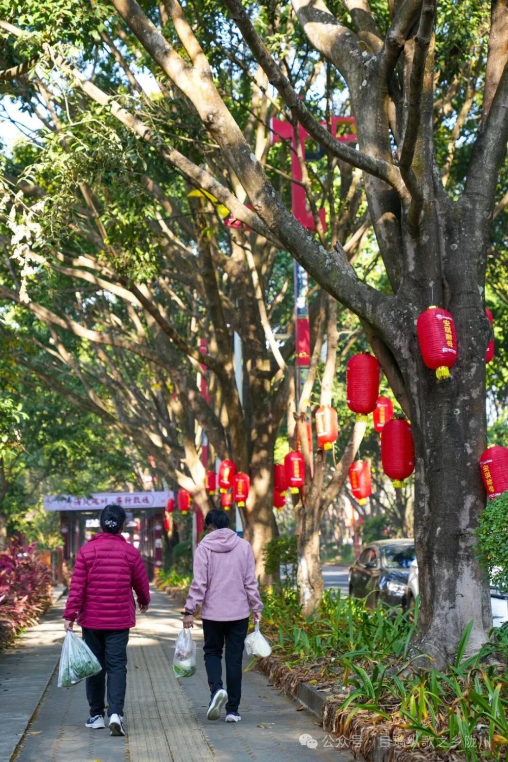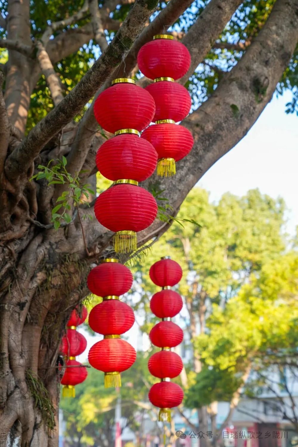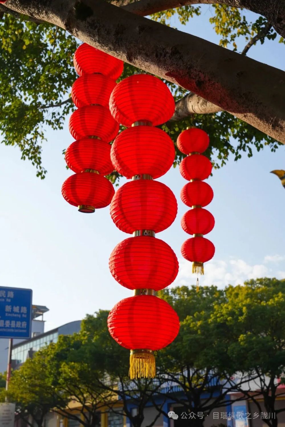 走在章凤城区的大街小巷,一串串红灯笼沿路灯杆、行道树整齐排列,红绸轻垂、灯影摇曳,与蓝天绿树、民族特色建筑相映成趣。