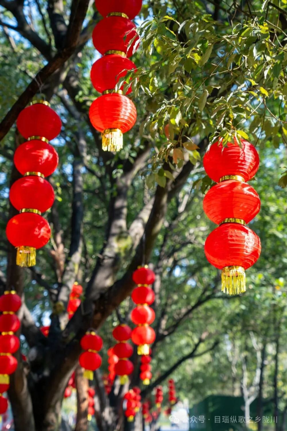 灯笼阵列错落有致,白天红火大气,夜晚暖光流转,勾勒出城市最温柔喜庆的轮廓。