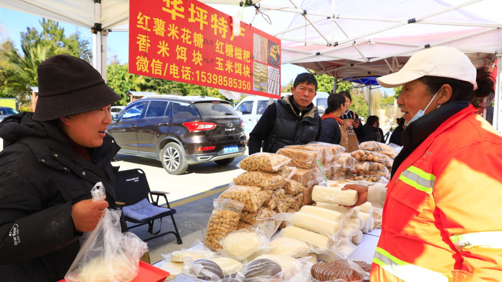 消费者在购买华坪土特产。(丽江融媒记者 曾润民 摄)