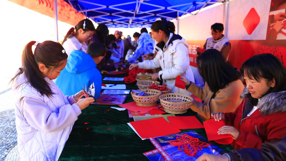 知识问答、灯谜竞猜、新春拓印、中国结编织、窗花剪纸等互动体验区吸引了众多职工和市民驻足。大家或猜谜对诗,或亲手制作传统手工艺品,在互动中感受文化魅力。8岁的木文在剪纸老师的指导下成功剪出窗花,她开心地说:“我要把自己剪的窗花贴在家里,让家里也充满年味!”