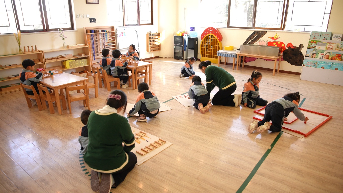 蒙氏教育中说,“环境是第三位老师”,大研幼儿园便把这份理念,藏进园区的每一个角落。标准化的蒙氏教室,整齐摆放着贴合孩子成长的教具。生活区、感官区、科学文化区等划分清晰,让孩子在动手操作中感知世界、收获成长。