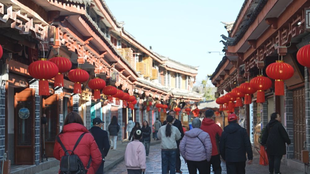 丽江古城浓浓的春节氛围。(丽江融媒记者 戴汝杰 摄)