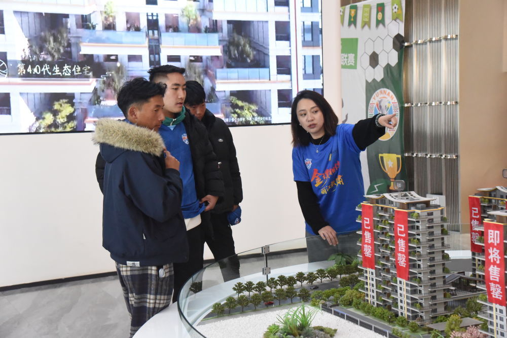 金璞地产与滇超联赛丽江队联合举办社区互动活动,队员参观小区。(丽江融媒记者 和玉松 摄)