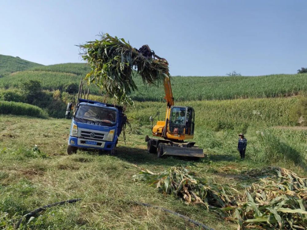 2025年,云县推出“玉米秸秆粉碎青贮高效机械化技术”。这项技术是青贮饲料加工领域先进、适用、高效的机械化技术,核心是在玉米生长至灌浆后期、籽粒水分含量达60%-70%时,通过机械设备将全株玉米收割切碎、籽粒破碎揉碾,再以打捆包膜或窖池压实的方式贮存,让其在密闭厌氧环境下发酵为优质饲料。