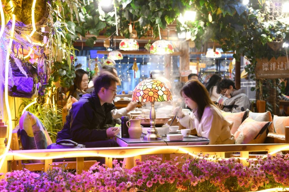 “这段时间我们的生意特别好,每晚都会有十多桌客人。”火锅店负责人李先生开心地说,最近,越来越多的游客开启了“白天游周边、夜晚览古城”的文旅消费模式。