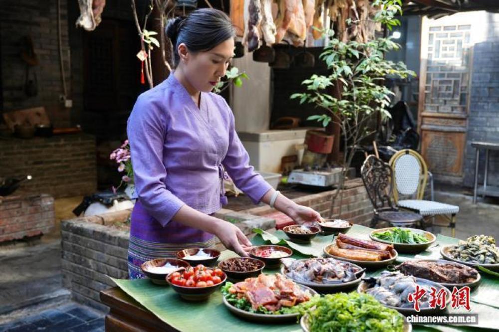 中新社云南普洱2月16日电 (罗婕)春节假期,云南边境城市普洱市迎来旅游客流高峰。除夕清晨,茶马古城旅游小镇一间马帮菜馆炭火正旺。普洱市非物质文化遗产代表性项目马帮菜传承人赵毅忙着备料,豆花、腊肉、芭蕉花、树番茄等干鲜食材铺满案头,升腾起年味。