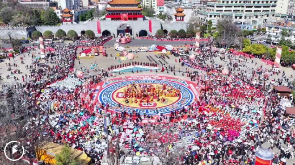 2月17日,云南省曲靖市麒麟区2026年“千人舞麒麟”活动在南城门广场举办。