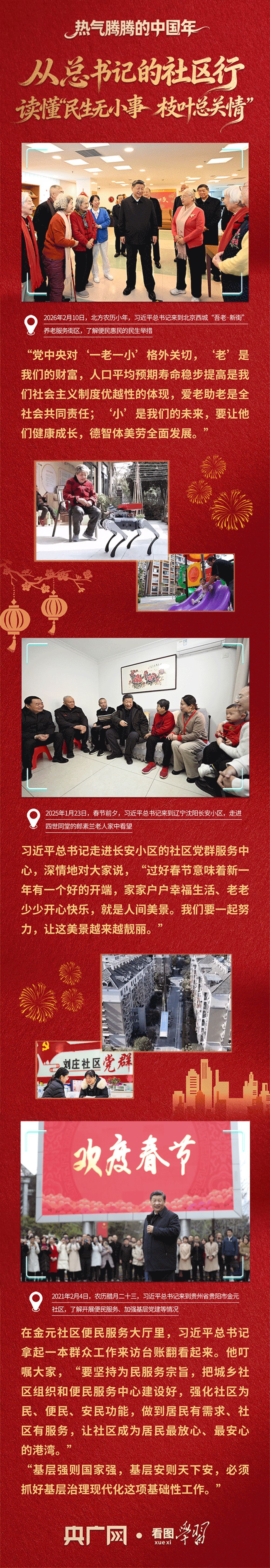 老旧小区改造得怎么样?有哪些便民之举?居民生活品质提升得如何?总书记高度重视基层社区工作,老街区常常是地方考察的重点之一。社区虽小,却连着千家万户,体现着城市更新的民生细节、基层治理的智慧与温度,更承载着百姓的获得感和幸福感。