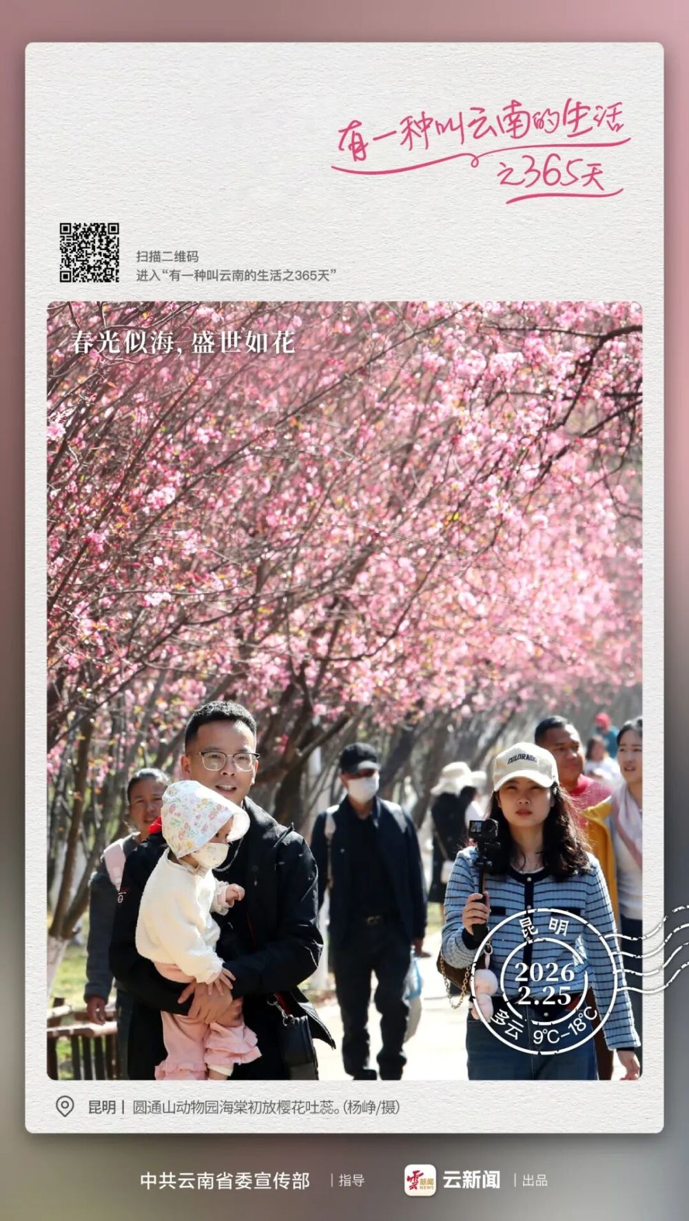 从明清“花朝盛会”到如今的“圆通樱潮”,赏花传统在昆明从未褪色,成为一代代昆明人的春日印记。