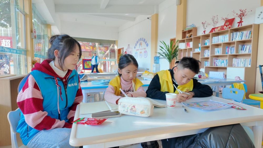 “我学的是学前教育,到这里可以提前适应一下怎样当老师,把我所学的知识运用到实践中去。”同样作为志愿者的韦金莲,始终带着耐心与爱心陪伴孩子们。每天在开展作业辅导、趣味游戏等活动之余,她还会结合示范走斑马线、讲解少吃零食的益处等方式,潜移默化引导孩子们养成好习惯。当小朋友们发生小矛盾时,她便化身“调解员”,在耐心了解事情来龙去脉、细心调解等实践中不断升华所学知识。