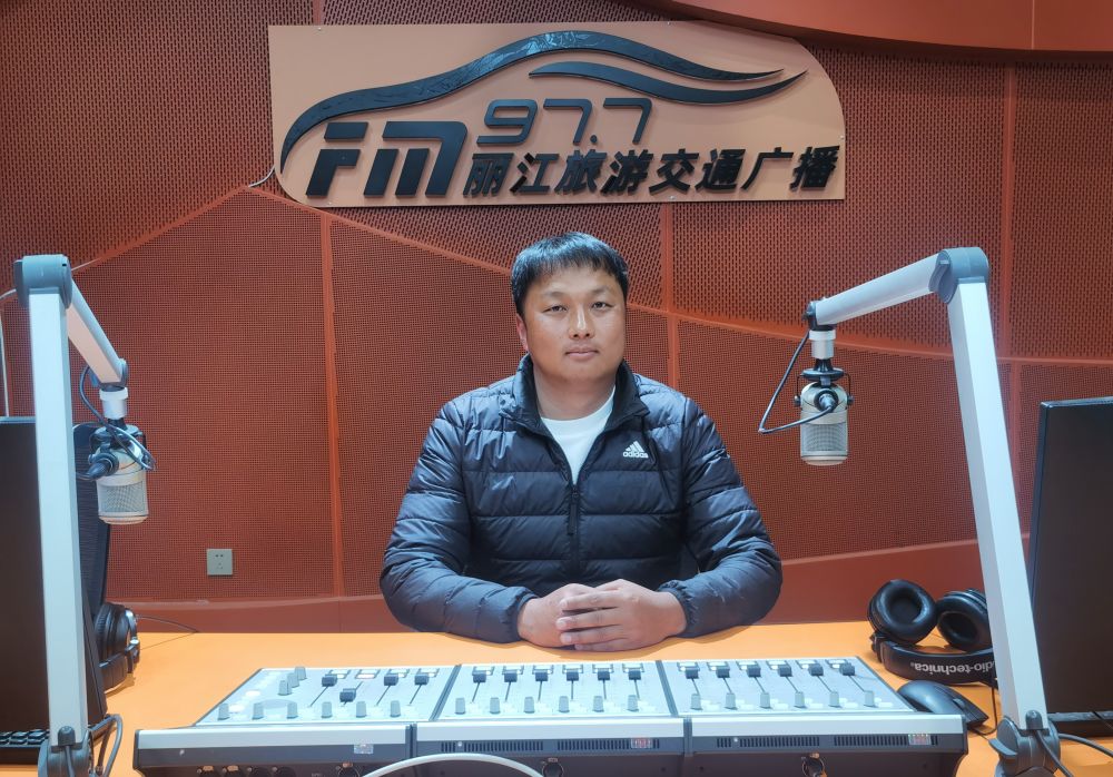 2月25日下午,中济海公园2026年逐梦滇超·丽江雪山小将足球邀请赛赛事负责人和梅育做客丽江旅游交通广播。(丽江融媒记者 李婧 摄)
