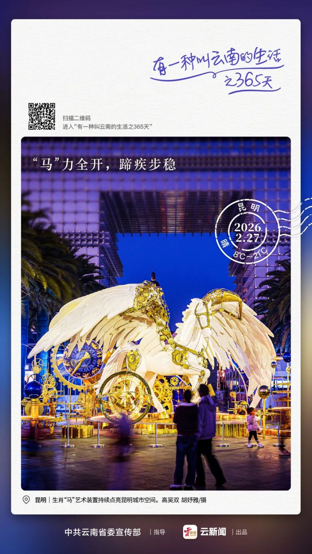 春节假期落幕,暖意未减,活力重启。云南省昆明市各大商圈依旧灯火璀璨,那些以马年为主题的艺术装置,褪去节前的期盼,化作新岁奋进的注脚,生动诠释着“有一种叫云南的生活”——既有烟火温情,亦有奔腾向上的力量。