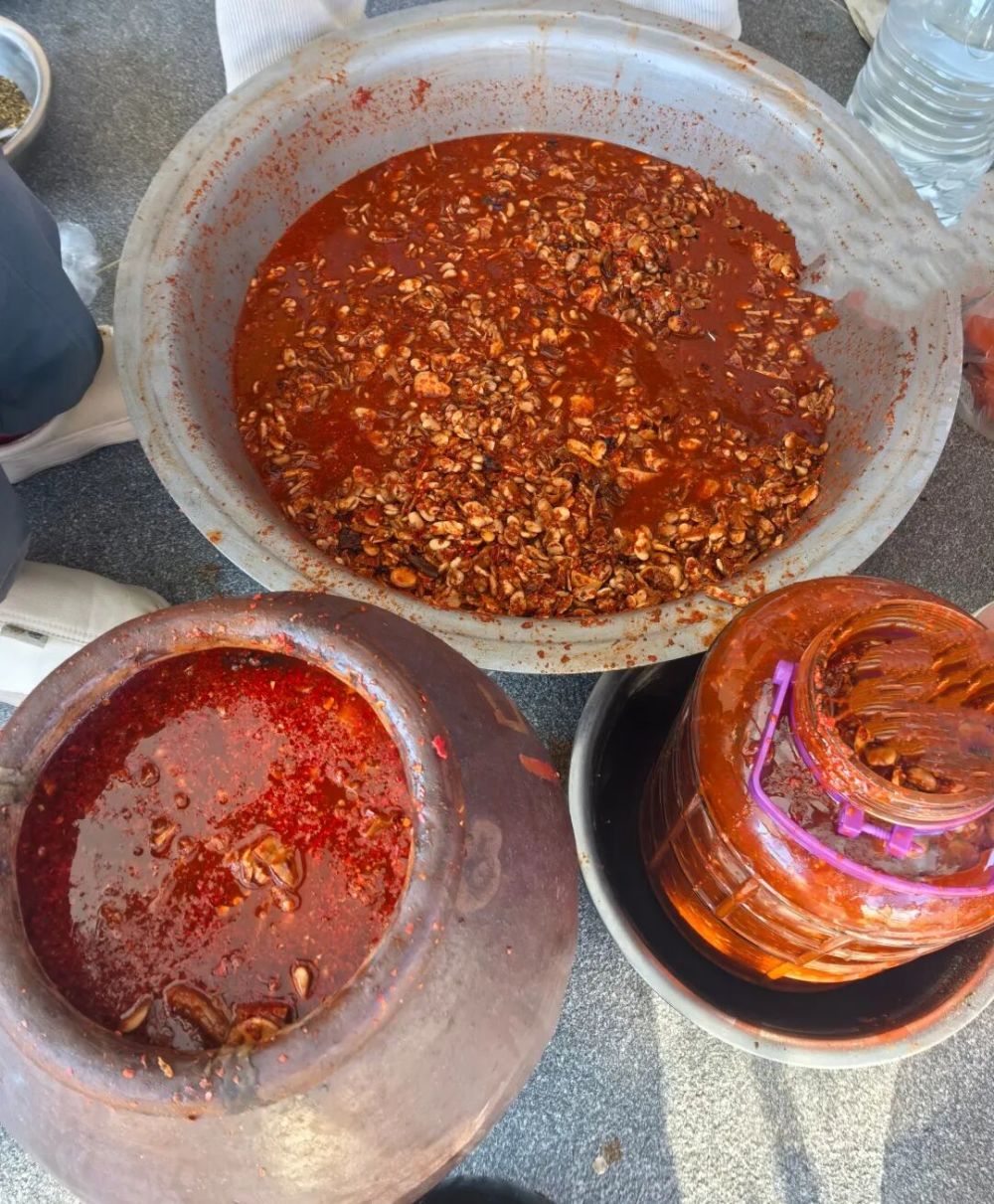 一切准备就绪,外婆系上那条洗得发白的黑布围裙,挽起袖子,郑重又小心地开始拌酱。她的手布满了岁月的纹路,却精准得很,凭手感就知道该放多少盐、多少酒、多少辣椒面、多少花椒面。再倒上提前熬好放凉的草药汤汁,外婆用双手一遍遍地翻拌,每一下都透着认真。