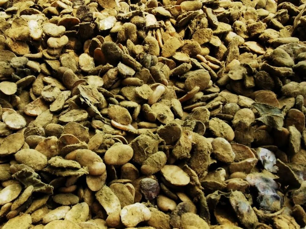 剥好的蚕豆瓣,要摊在竹席上晒干水分,然后铺在草席上,盖上一层程海湖山坡上特有的“黄金叶”。这种叶子是外婆亲自带着我和爸妈到程海湖的山坡上采摘回来的,带着天然的油脂香,是外婆做酱的秘密武器,盖好叶子后,再用麻袋严严实实捂起来,搬进阴凉通风的屋里。接下来的一个月,蚕豆瓣就在这“黄金叶”的暖被里,借着三伏天的高温高湿慢慢发酵。灰绿色的霉菌悄悄爬满豆瓣,那是蚕豆酱风味形成的关键,外婆说,这是“让豆子长出魂儿”。