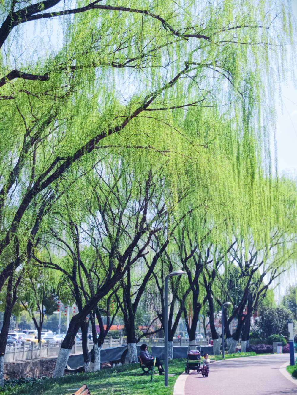 沿河而立的垂柳率先抽芽,嫩黄的柳丝垂进清凌凌的水里,晃出满河春意。公园里的紫李花悄然绽放,粉白的花簇如繁星点点,风一吹,轻轻摇曳,让人分不清是花动,还是心动。