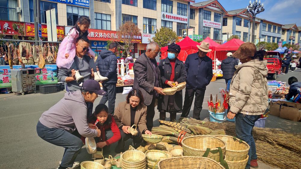 玉龙县的两个会场都汇聚了各地特色的手工艺品和特色商品:蒙自的葫芦摆件小巧玲珑、雕刻精美;石鼓的编织品纹理细腻、工艺精湛;永胜的针织座椅套美观实用,传统木制玩具造型可爱,勾起了许多人的童年回忆。苗木、特色美食、农特产品等商品一应俱全,满足群众的多样需求。