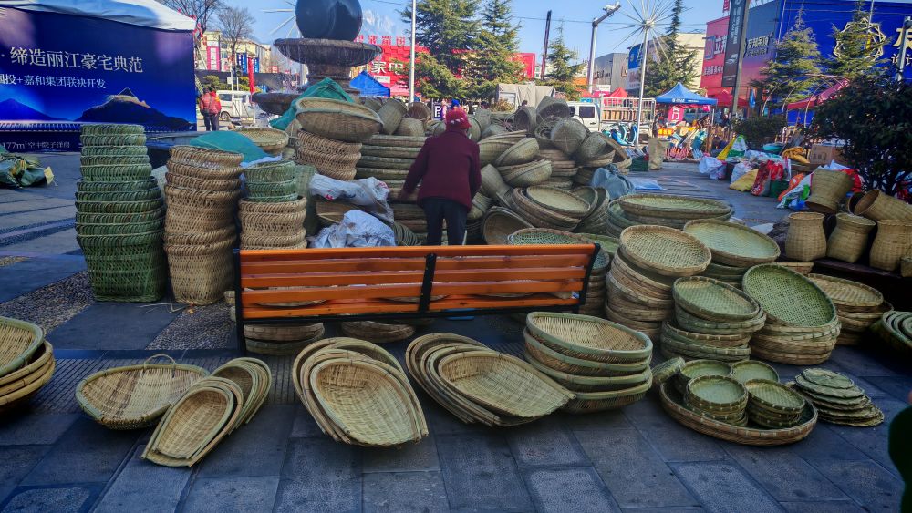 在玉龙县中心商贸城,市民选购石鼓竹编手工艺品 。(丽江融媒记者 木雯娇 摄)