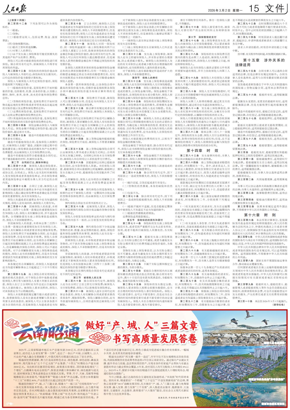 今日之昭通,通江达海的综合交通枢纽正加速形成,“双高铁”时代即将来临。面向未来,昭通紧扣“一个跨越”“三个定位”“开创发展新局面”的总纲,聚焦云南省委“3815”战略发展目标,扎实做好“产、城、人”三篇文章,着力统筹服务发展、融入发展、借力发展“三个发展”,深入推进农业强市、能源强市、文旅强市、交通强市、生态强市、教育强市“六大强市”建设,在社会主义现代化新征程中努力交出优异答卷。