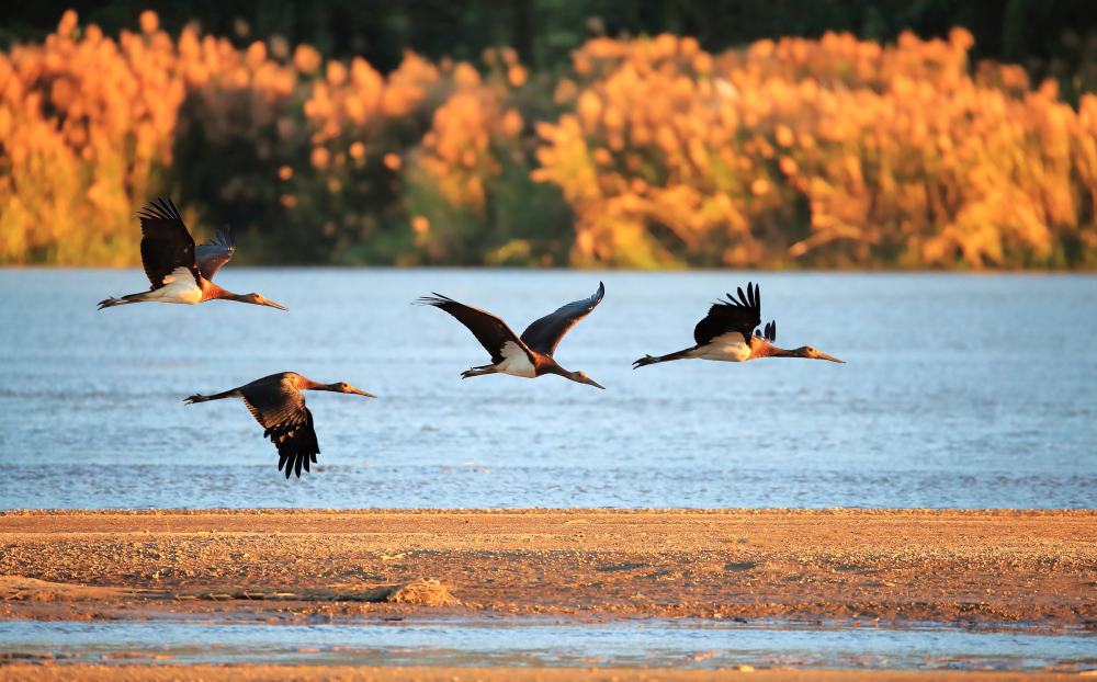 国家一级保护野生动物黑鹳。郑彬 摄