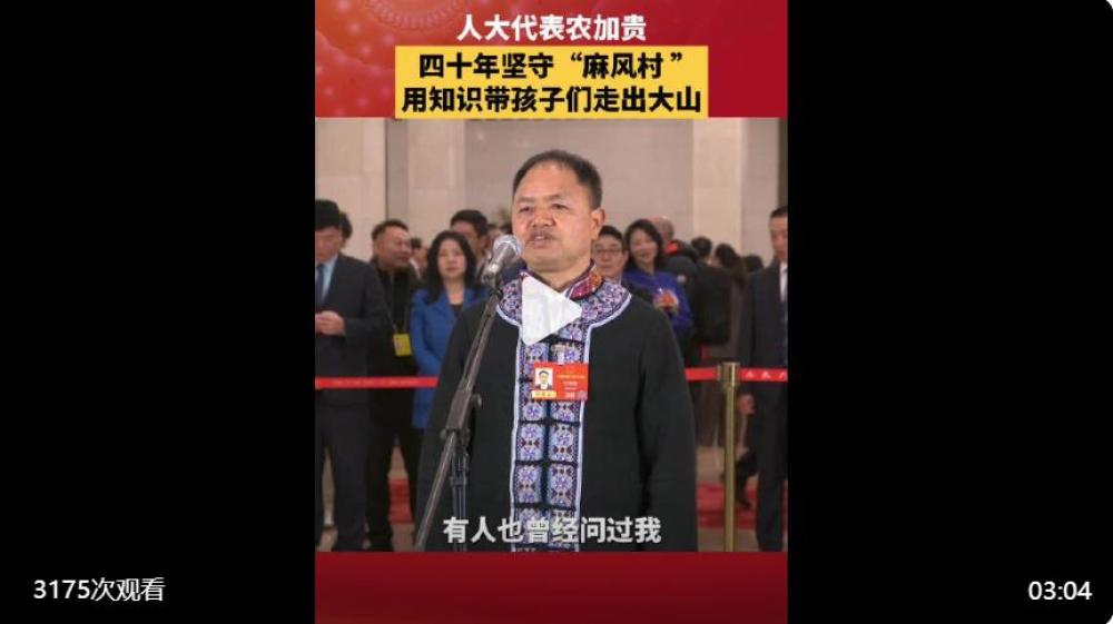 3月5日上午,十四届全国人大四次会议首场“代表通道”集中采访活动在人民大会堂举行。全国人大代表、云南省文山州广南县落松地小学教师农加贵讲述了落松地小学的故事。从被拒收的“麻风村”到如今的示范村,农加贵在落松地小学用40年坚守诠释大爱。村民用锅铲拌砂浆,老师立志带娃走出大山,知识改变命运,善良铸就奇迹!致敬每一位乡村守护者!