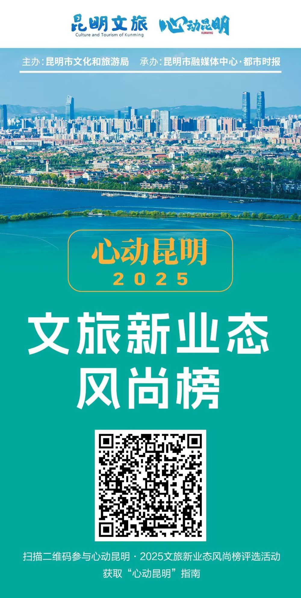 心动昆明·2025文旅新业态风尚榜评选活动由昆明市文化和旅游主办,昆明市融媒体中心·都市时报承办,活动聚焦昆明文旅产业发展与转型过程中涌现的新业态、新模式、新场景,将评选心动昆明“好品”“好味”“好梦”“好景”“好享”五大类别新业态100个。