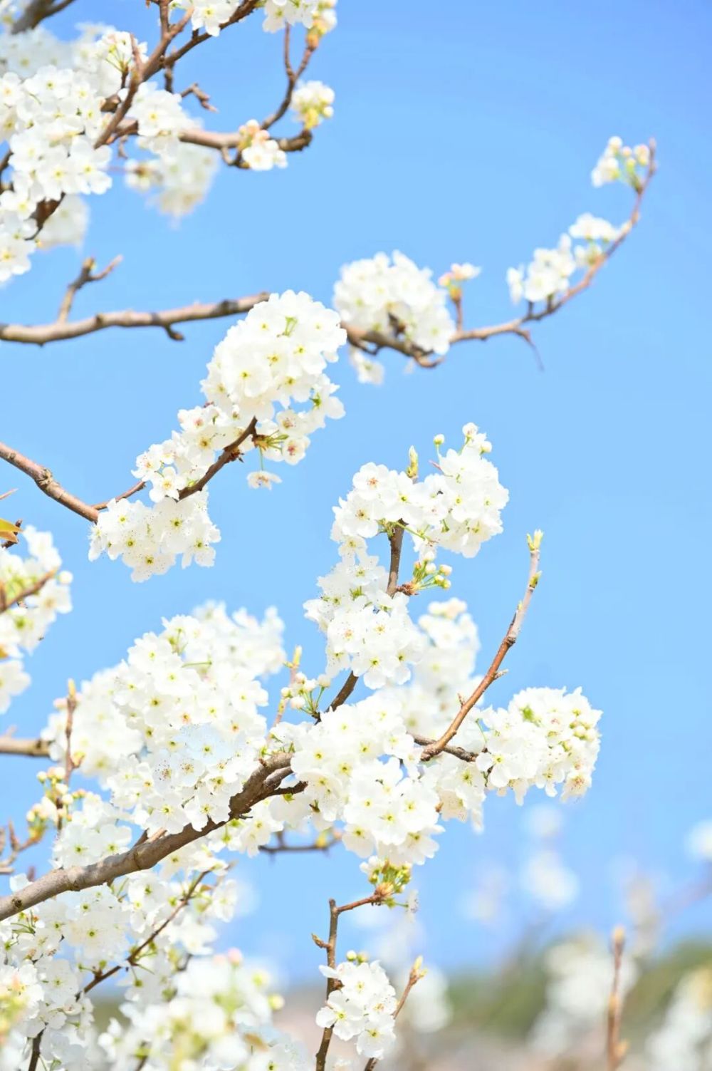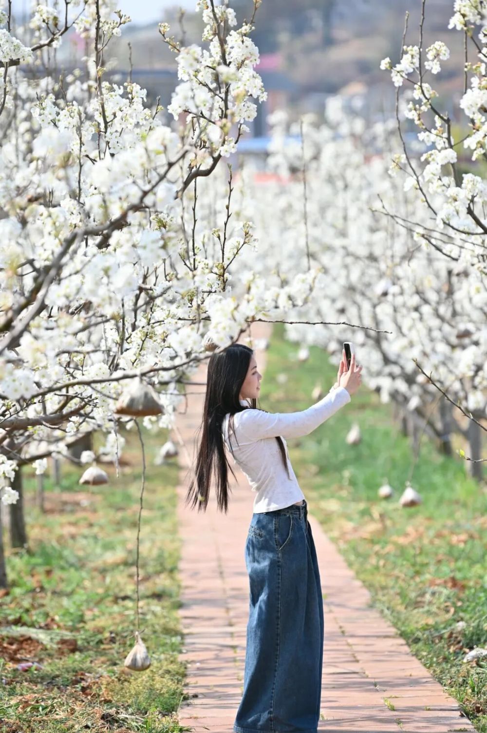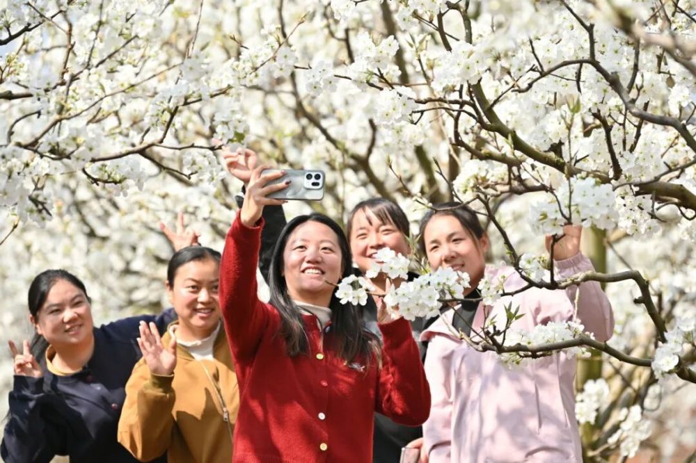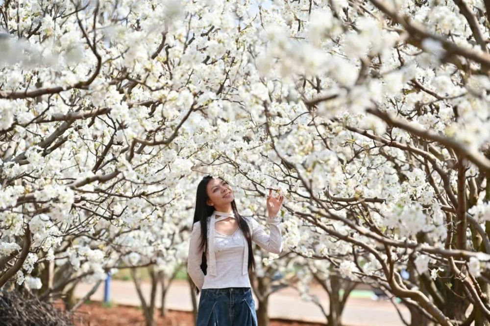 从市区驱车向西北,大约半小时的路程,便能与这场盛大的春日“白色浪漫”撞个满怀。漫山遍野的梨树像约好了似的,齐齐绽放,每棵梨树的枝头都攒着层层叠叠的白,挨挨挤挤、如云似雪,让春天瞬间就在眼前具象化了。